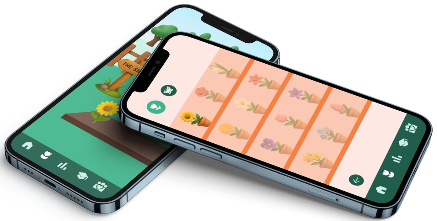 Die Ikonografie von Olive kombiniert ein klares Design mit einer verspielten Note, um sowohl die Navigation als auch die Interaktion zu unterstützen. Die Navigationssymbole sind einfach, flach und vertraut und verwenden erkennbare Symbole, um eine intuitive Bedienbarkeit zu gewährleisten. Im Gegensatz dazu sind die Gartenillustrationen und alle interaktiven Komponenten des Trackers als farbenfrohe 3D-Illustrationen dargestellt. Dies schafft eine charmante Wald- und Wiesenästhetik. Außerdem verleiht es der Benutzeroberfläche Tiefe, Persönlichkeit und Charme, während die funktionalen Elemente klar und zugänglich bleiben.